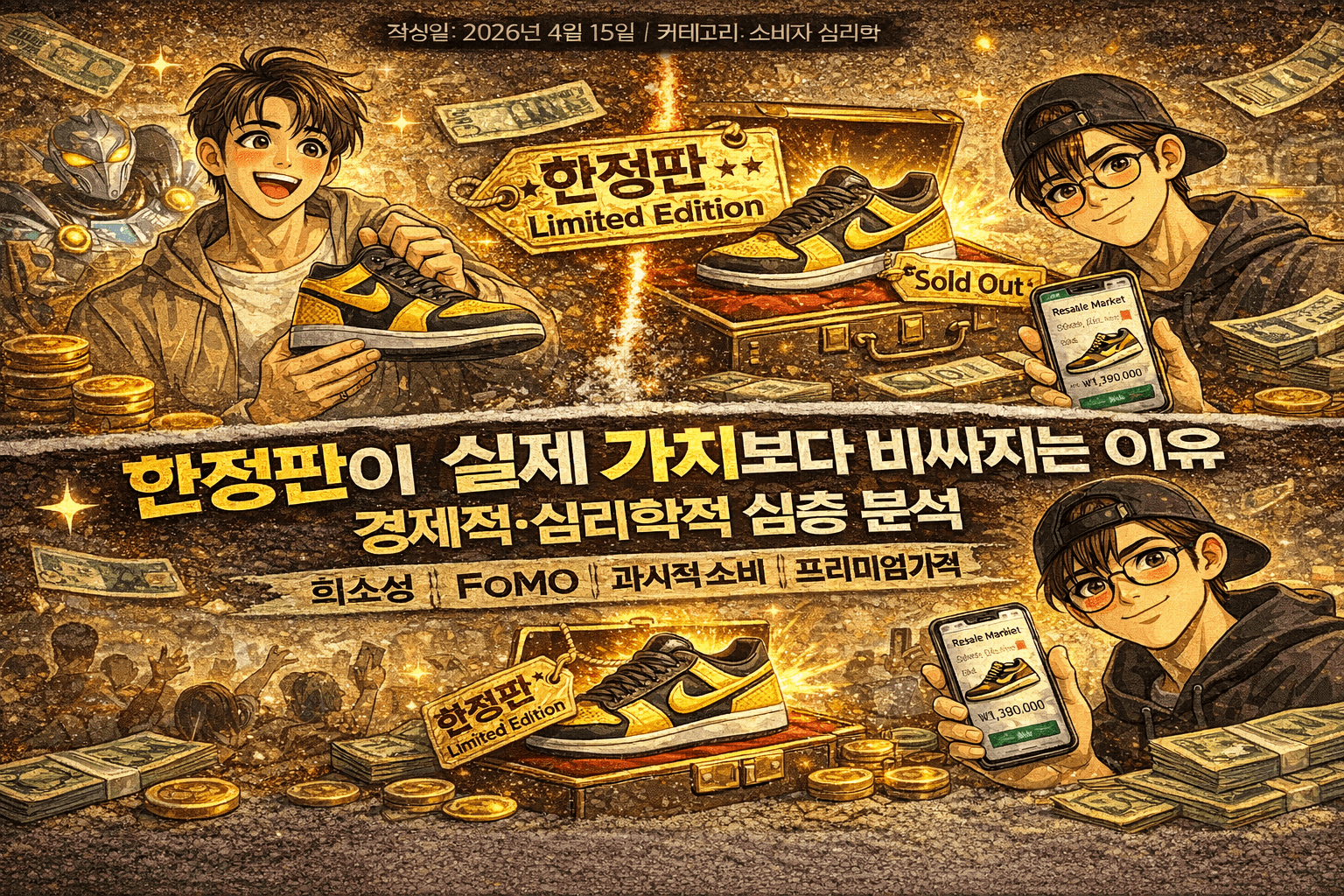 한정판(Limited Edition)이 실제 가치보다 비싸지는 이유: 경제적·심리학적 심층 분석우리는 왜 똑같은 기능을 가진 제품임에도 불구하고 '한정판'이라는 라벨이 붙으면 더 많은 비용을 지불하려 할까요? 2026년 현재, 리셀(Resell) 시장의 규모는 역대 최대치를 경신하고 있으며, 단순한 소비를 넘어 하나의 투자 수단으로 자리 잡았습니다. 이 글에서는 한정판 제품이 제조 원가나 실제 유용성보다 훨씬 높은 가격을 형성하는 근본적인 원인을 경제학적 법칙과 최신 소비자 심리학 연구 결과를 바탕으로 상세히 파헤쳐 보겠습니다.목차희소성의 법칙: 공급이 수요를 통제할 때 발생하는 현상심리적 기제: FoMO 증후군과 소유 효과베블런 효과와 과시적 소비: 가격이 오를수록 갖고 싶은 마음2026년 최신 트렌드..